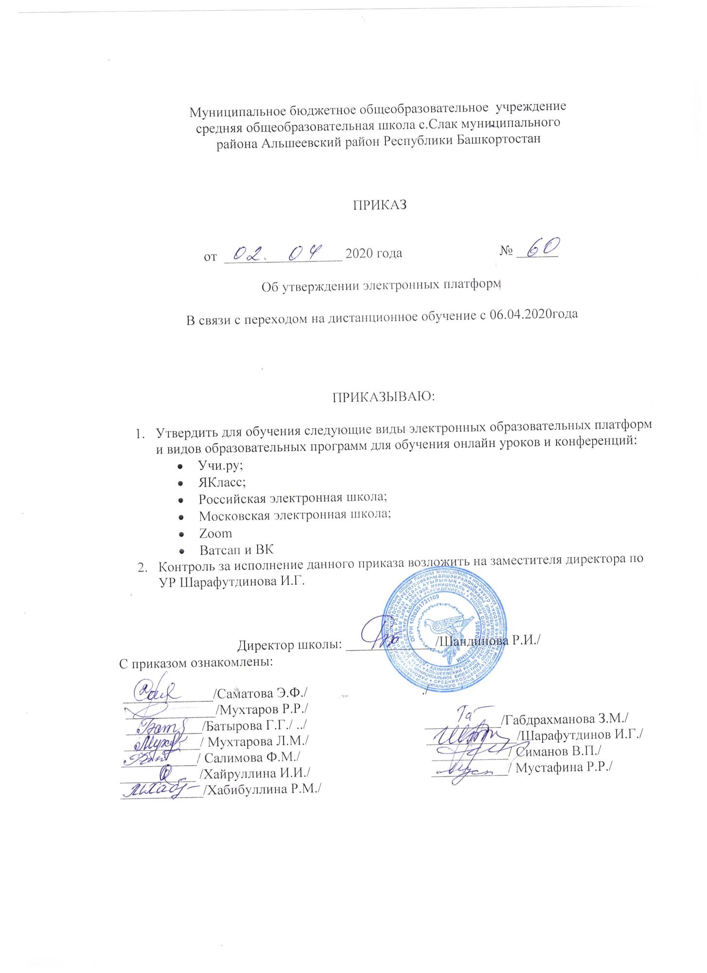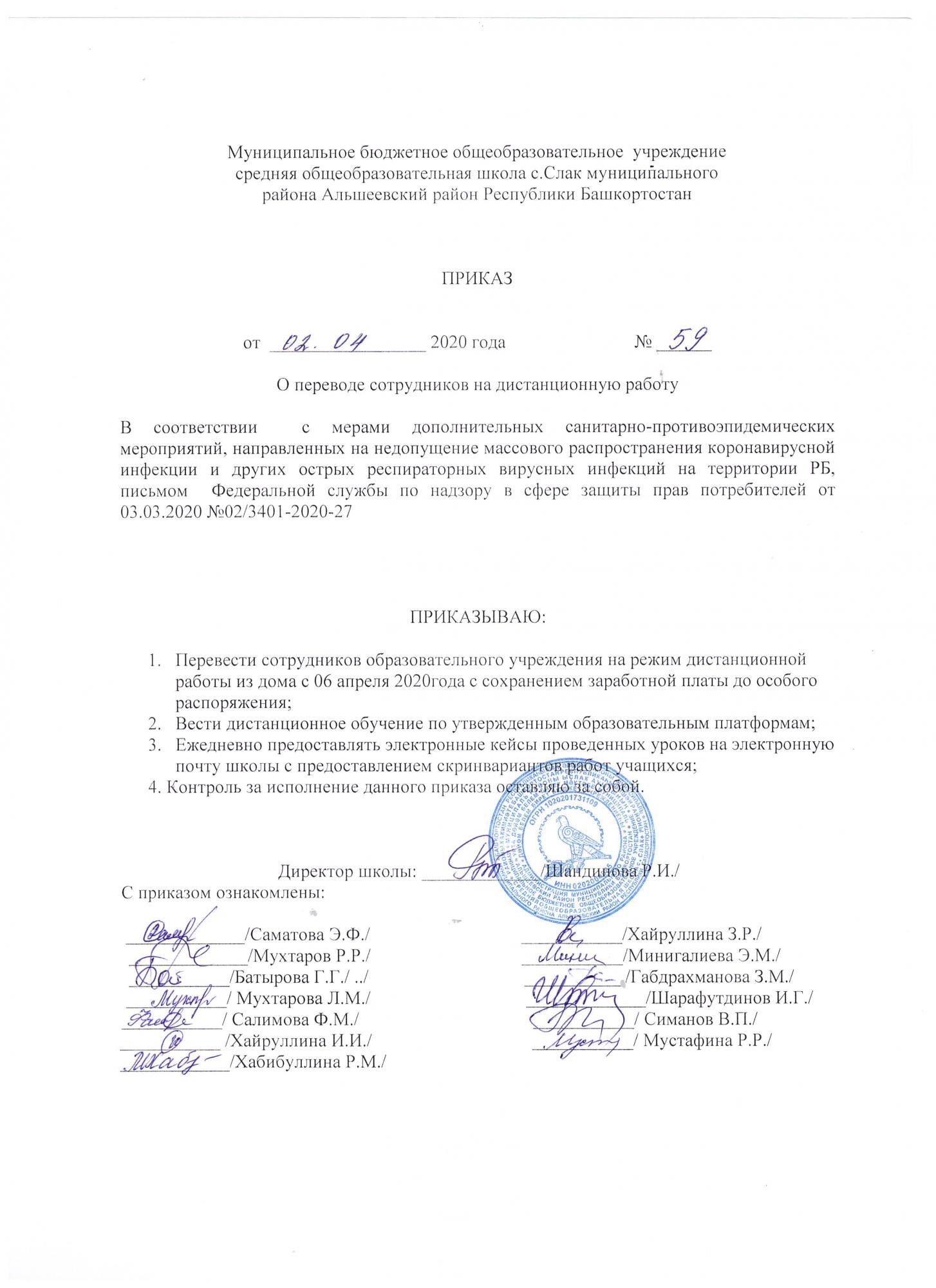 МБОУ СОШ с.Слак информирует, что с 06 апреля в школах МР Альшеевского района образовательный процесс будет организован в дистанционном формате: через электронное обучение и использование дистанционных образовательных технологий.