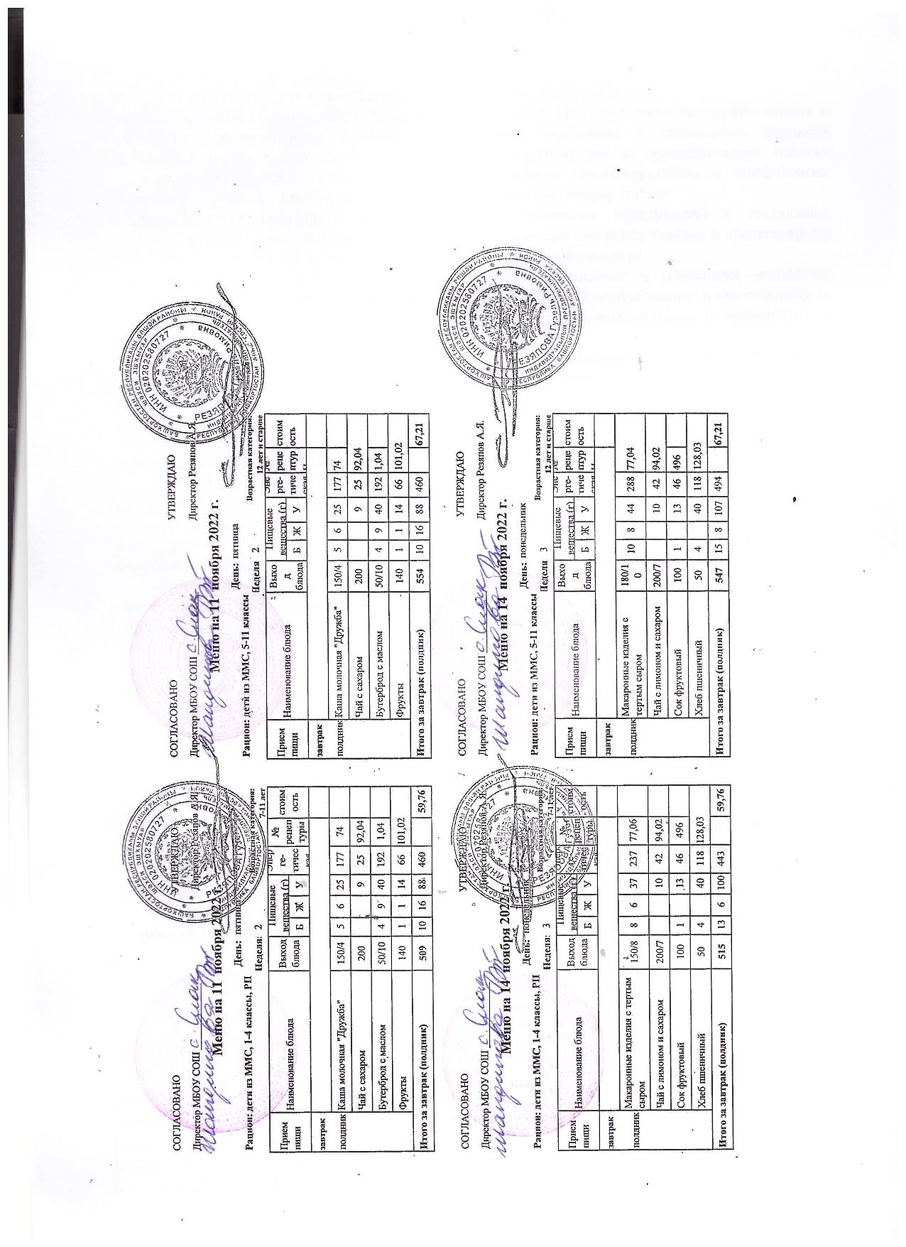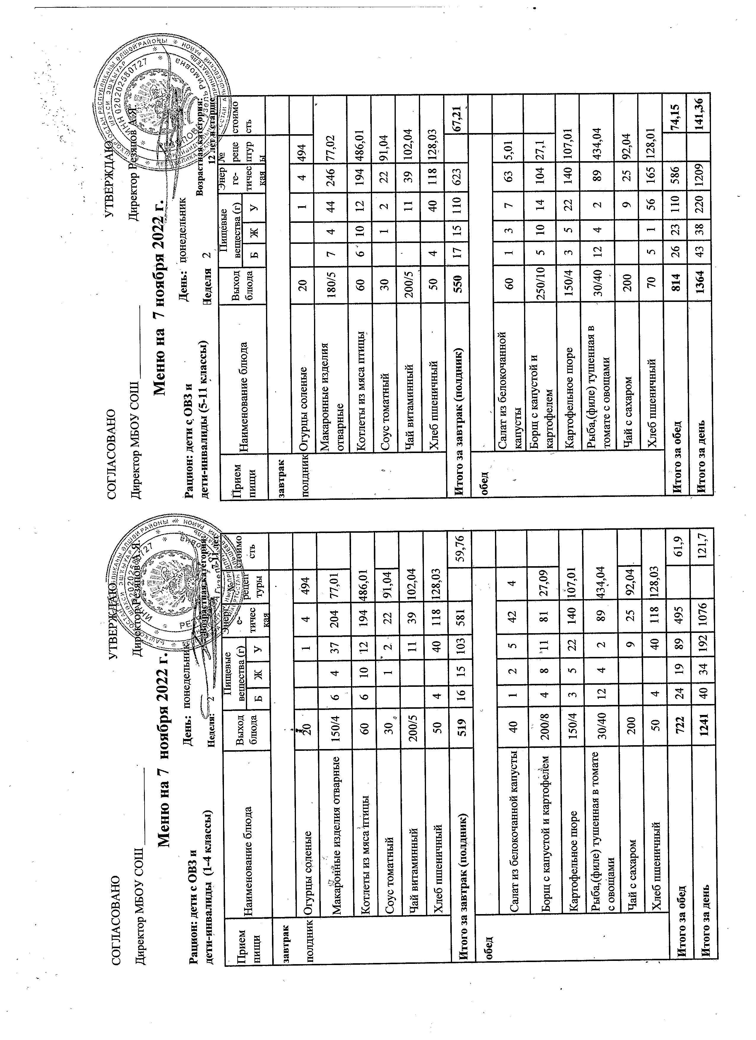 (контрольное меню на 07.11.2022 завтрак многодетные и ОВЗ завтрак)