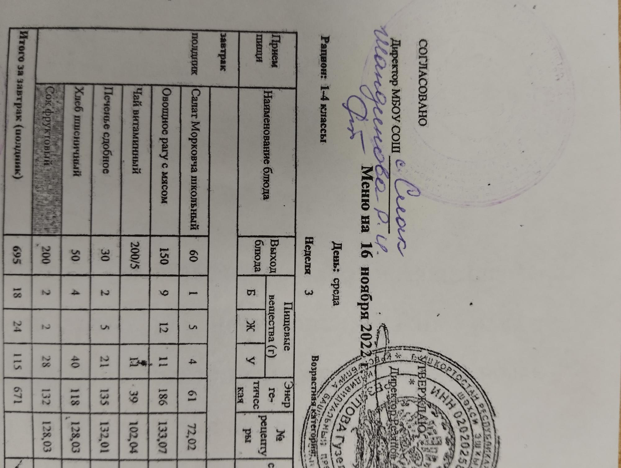 (контрольное меню на 16.11.2022 завтрак многодетные и ОВЗ завтрак)