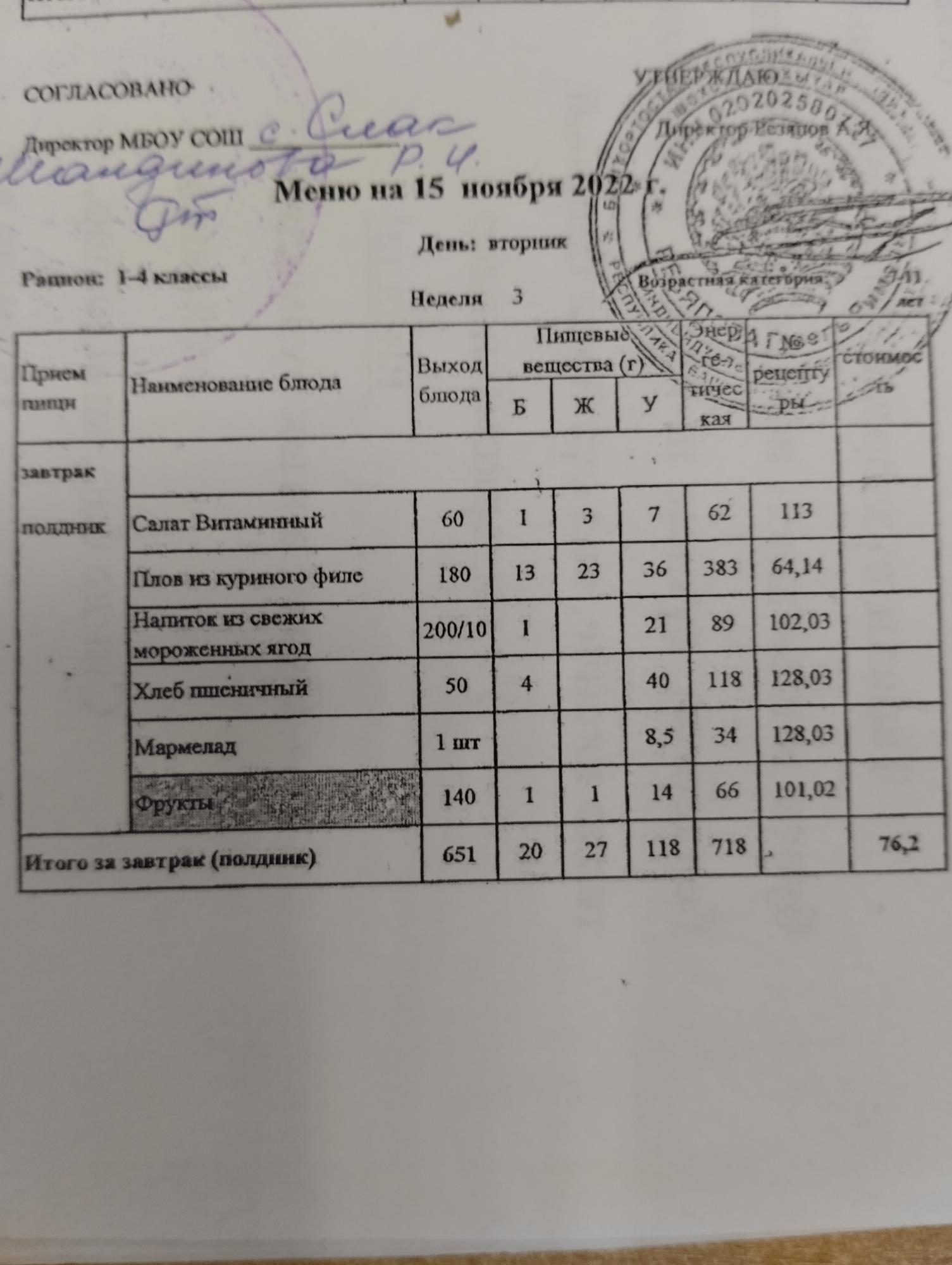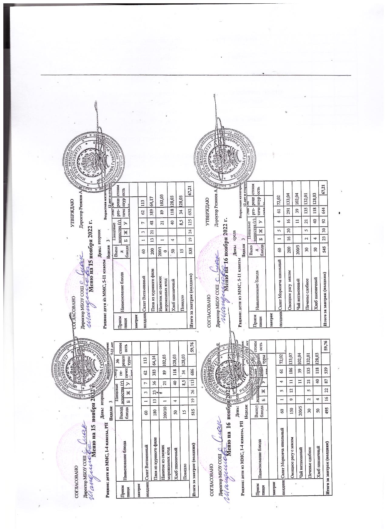 (контрольное меню на 15.11.2022 завтрак многодетные и ОВЗ завтрак)
