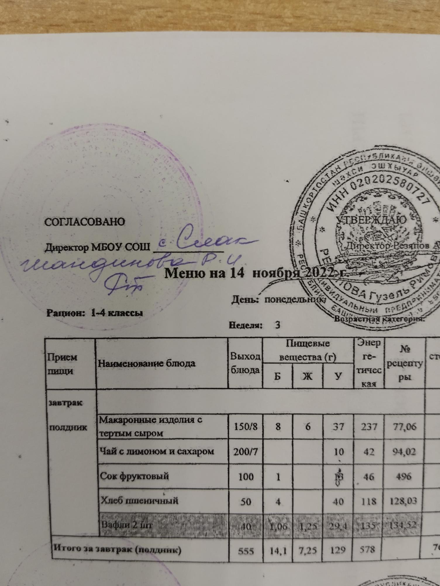 (контрольное меню на 14.11.2022 завтрак многодетные и ОВЗ завтрак)