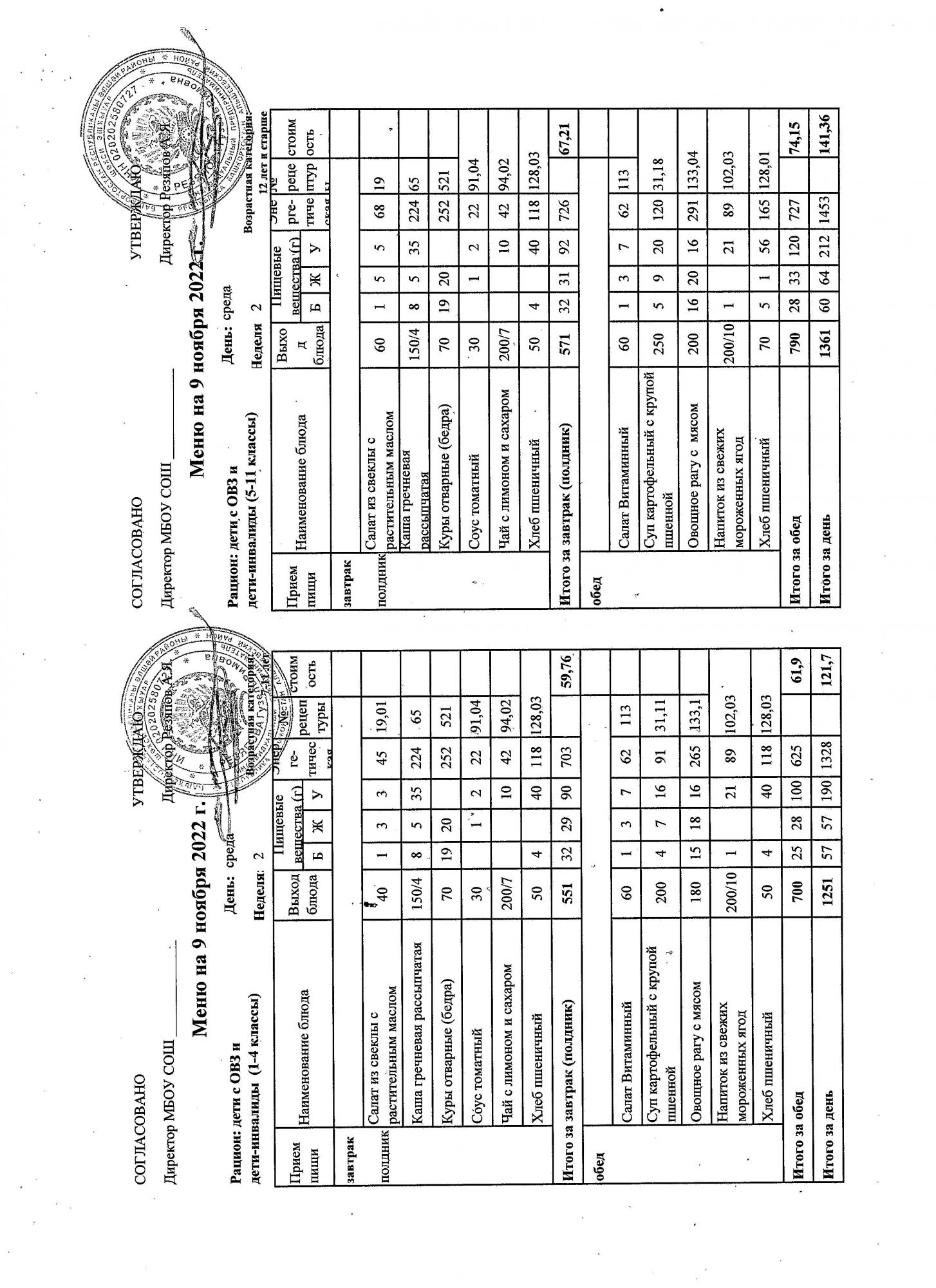 (контрольное меню на 09.11.2022 завтрак многодетные и ОВЗ завтрак)
