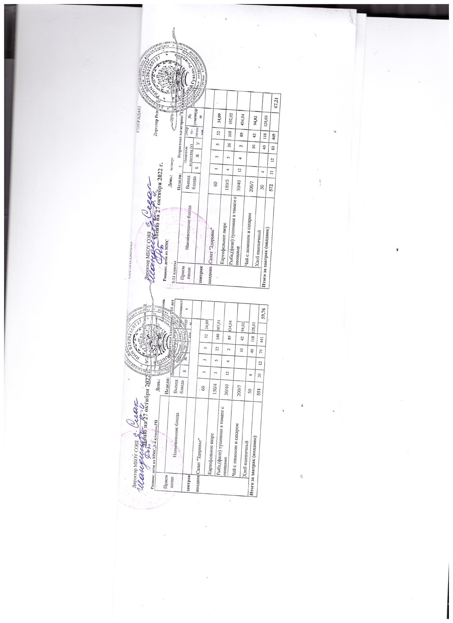 (контрольное меню на 27.10.2022 завтрак многодетные и ОВЗ завтрак)