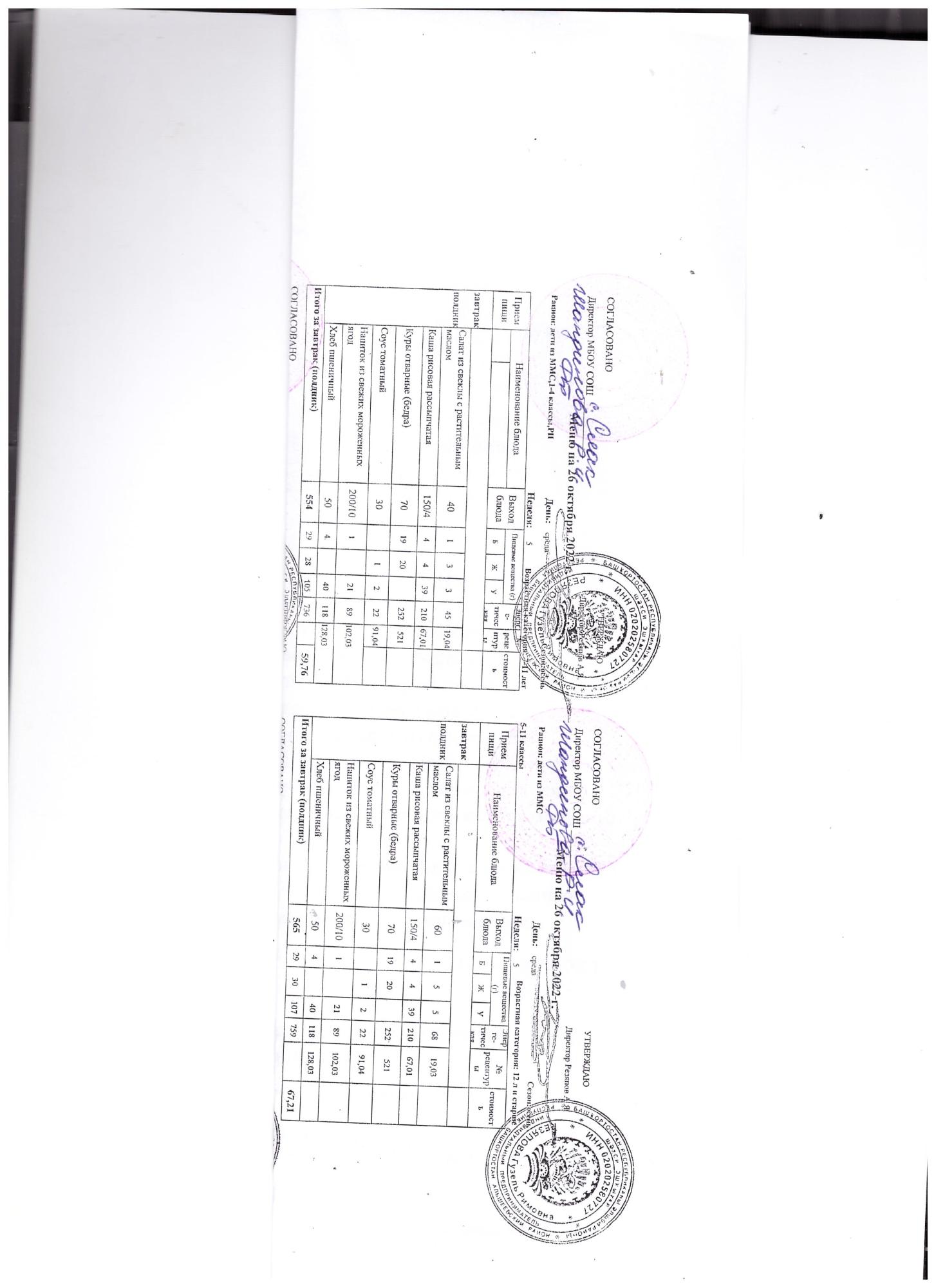 (контрольное меню на 26.10.2022 завтрак многодетные и ОВЗ завтрак)