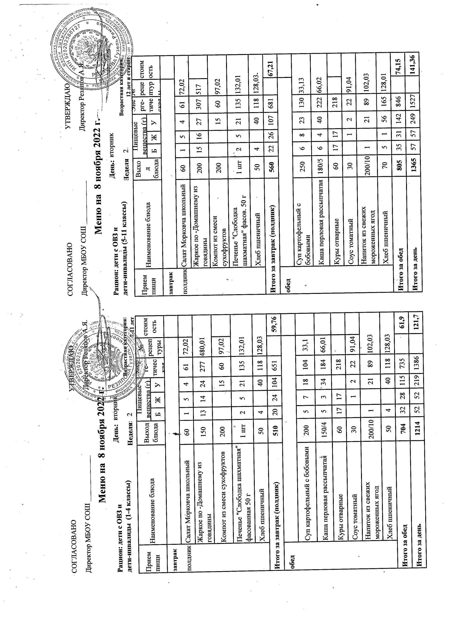 (контрольное меню на 08.11.2022 завтрак многодетные и ОВЗ завтрак)