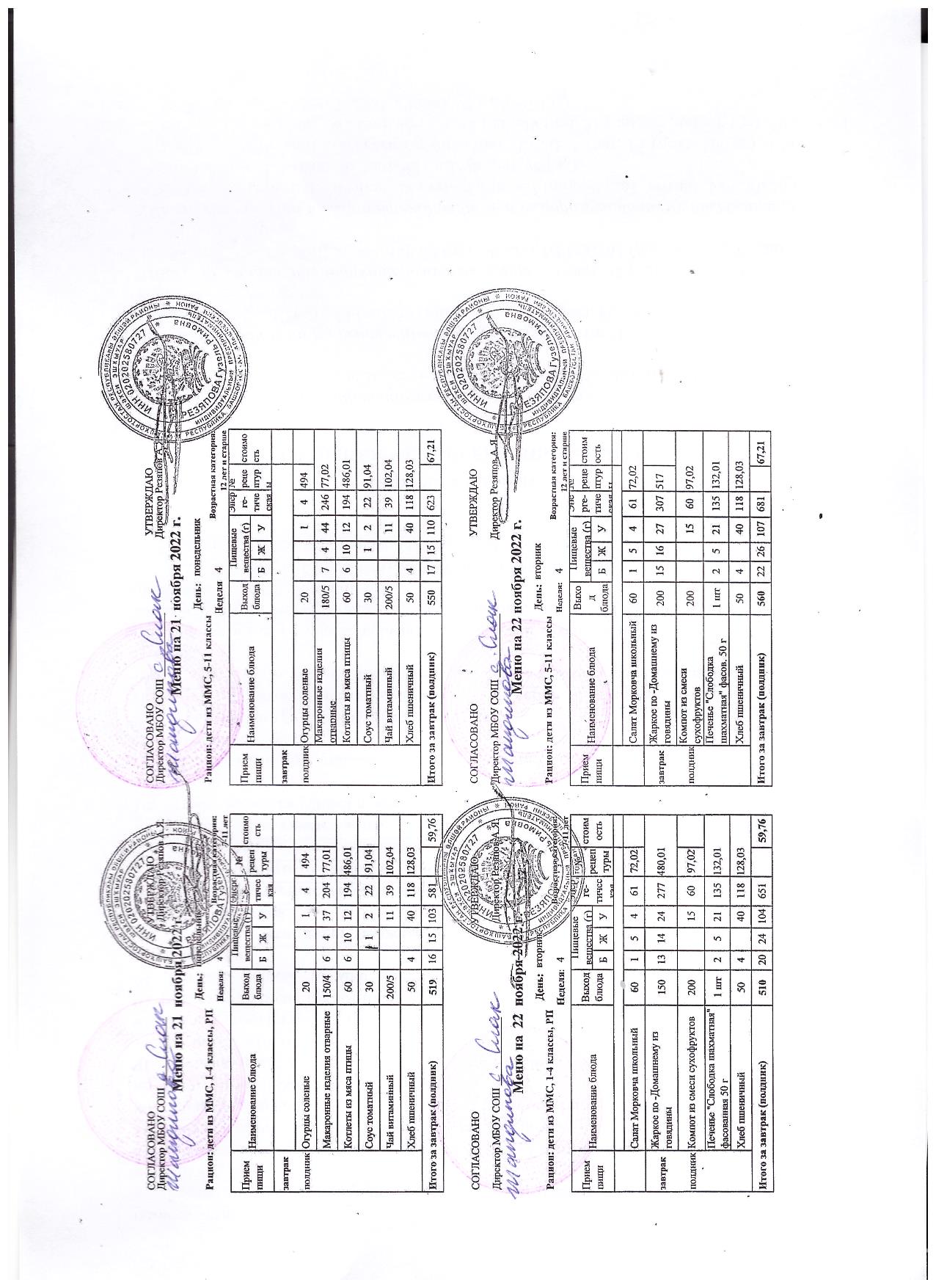 (контрольное меню на 21.11.2022 завтрак многодетные и ОВЗ завтрак)