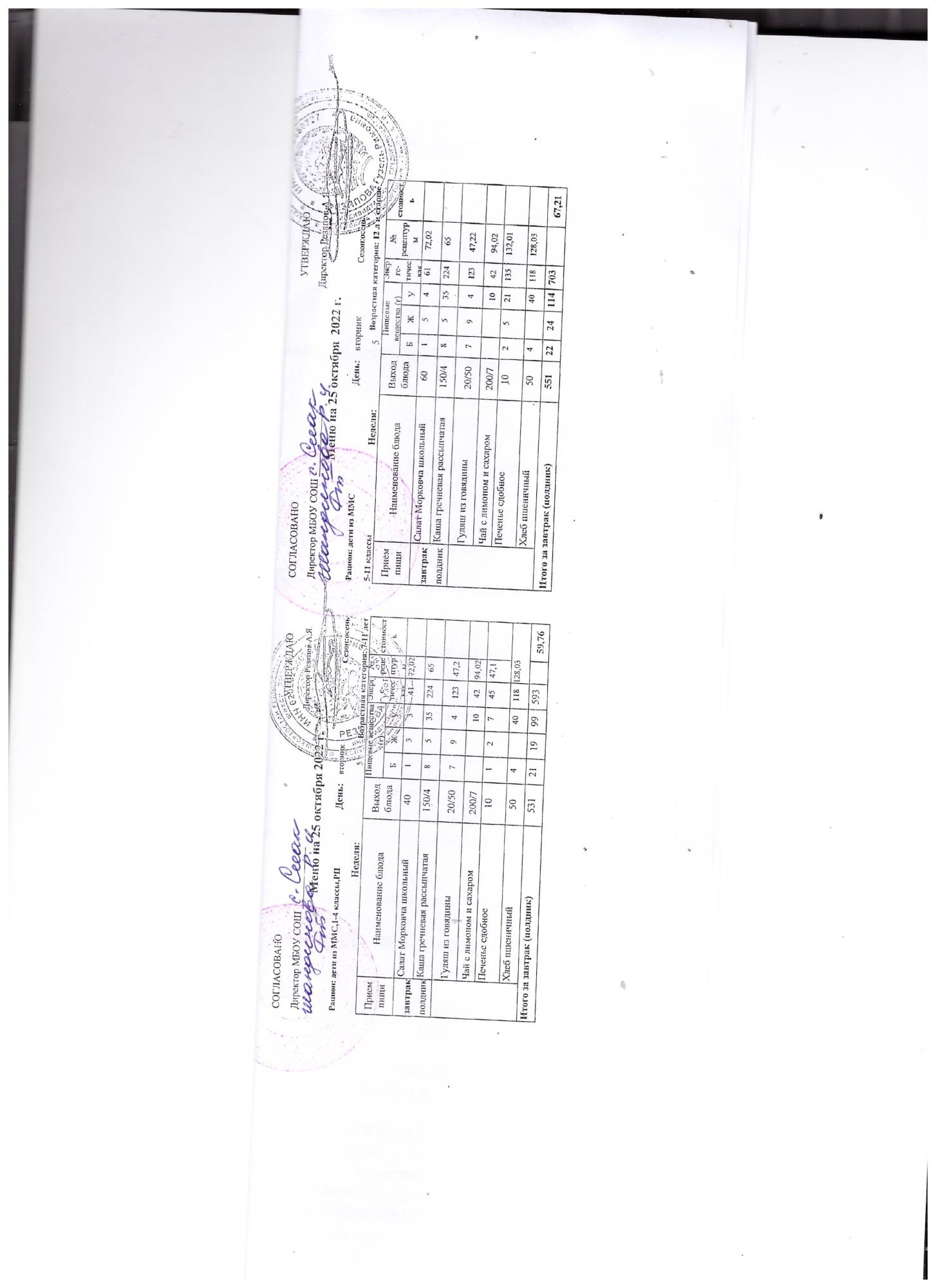 (контрольное меню на 25.10.2022 завтрак многодетные и ОВЗ завтрак)