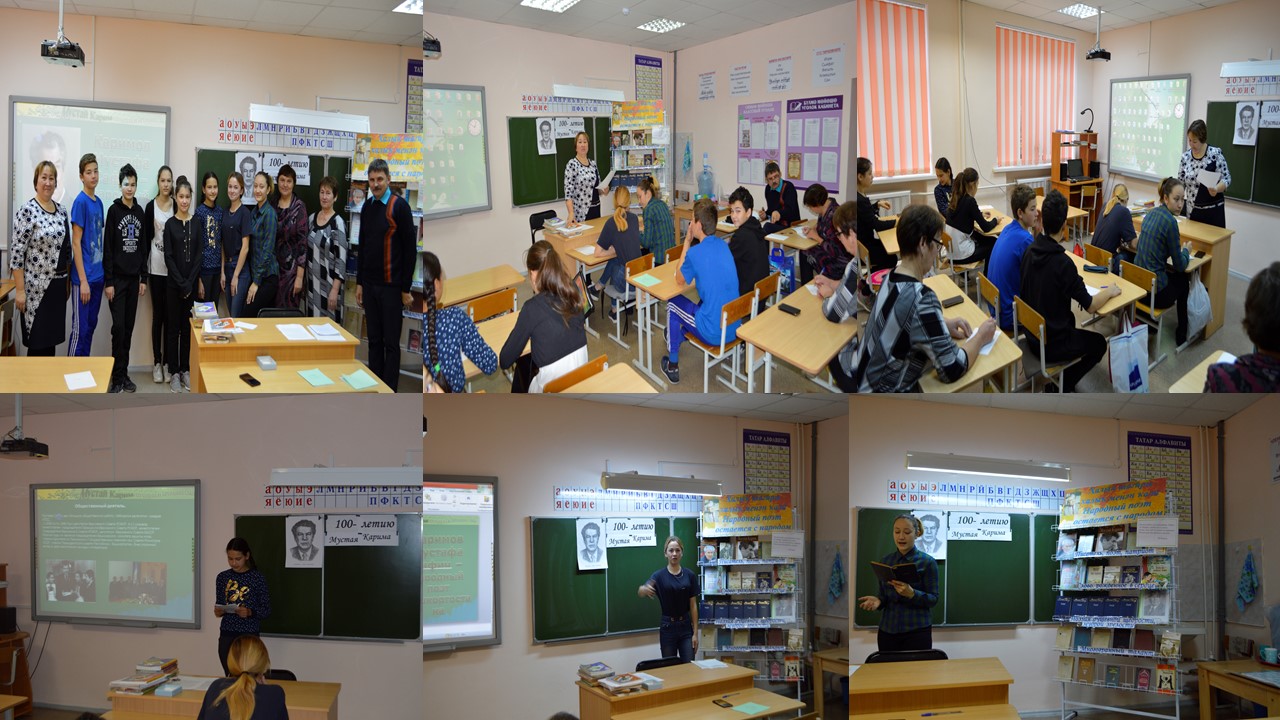 В рамках проведения мероприятий, посвященных к 100-летию со дня рождения народного поэта Башкортостана, заслуженного деятеля искусств Российского Федерации, героя Социалистического Труда, аксакала башкирской литературы Мустая Карима в нашей школе была проведена литературно-поэтическая композиция. Учащиеся и учителя написали тотальный диктант, посвященный Мустаю Кариму.