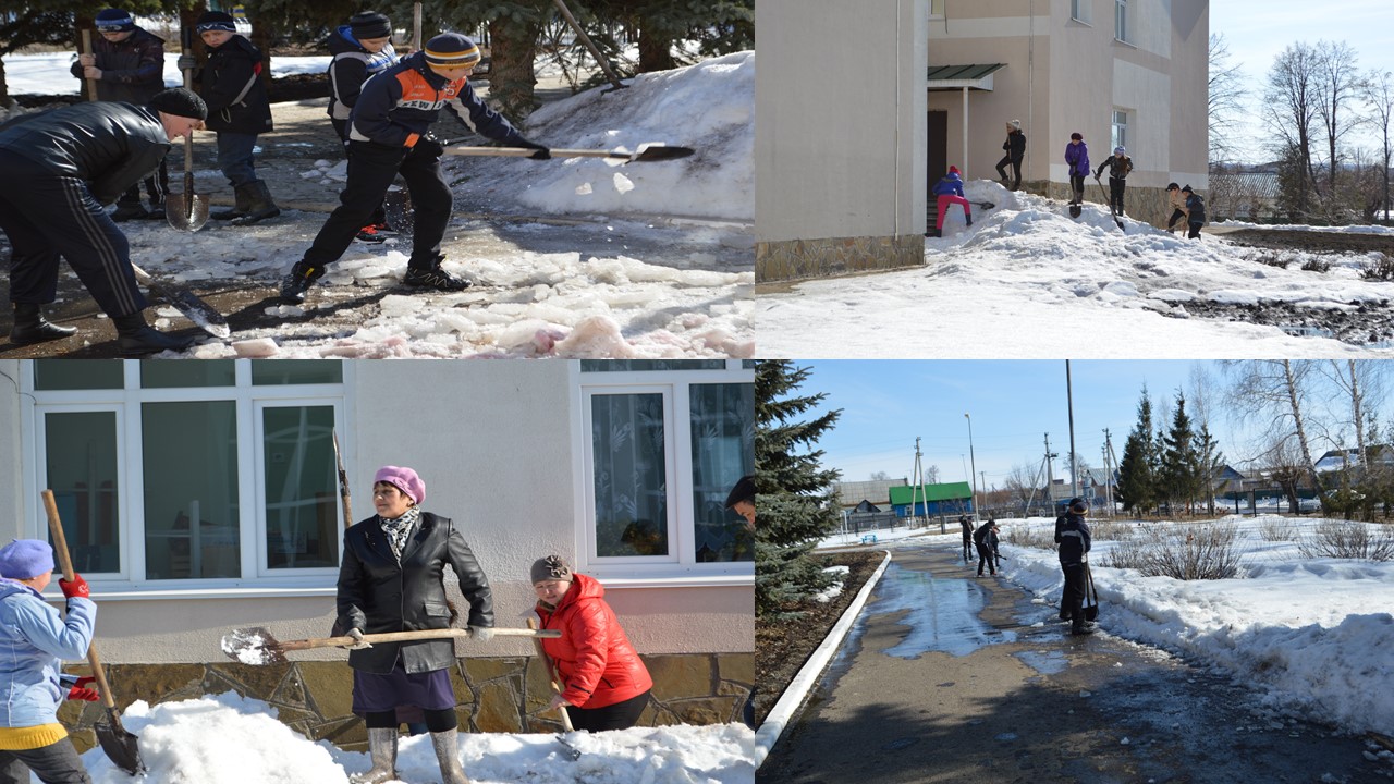 На территории школы и вдоль школьной ограды раскидали, оставшийся снег, очистили территорию школы от мусора.