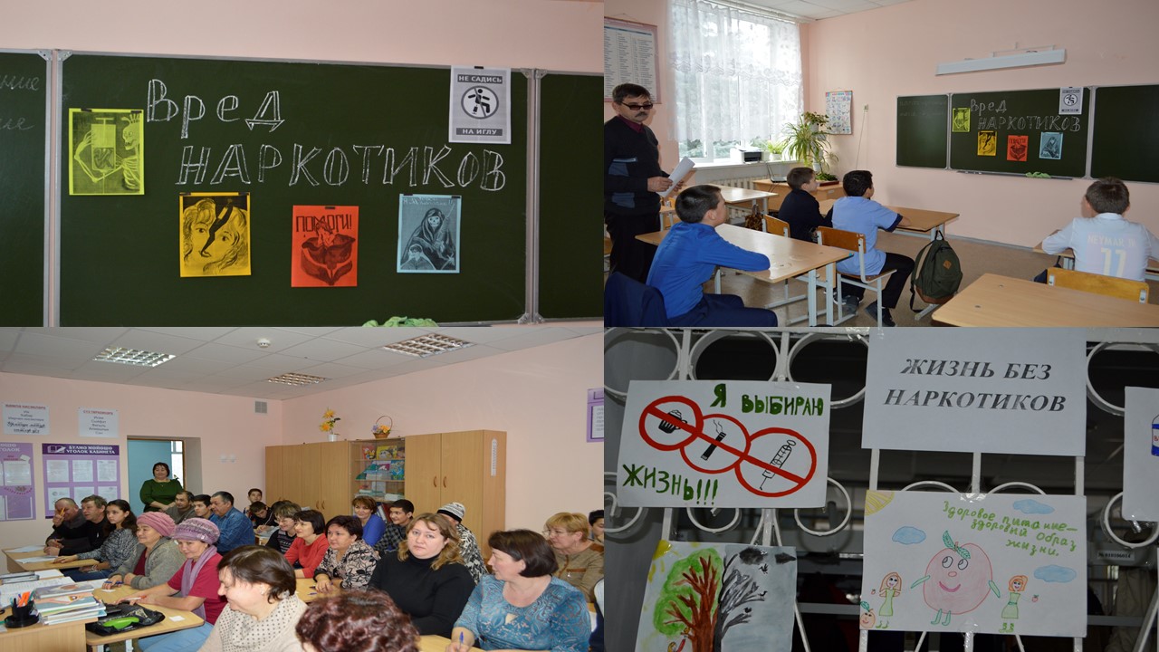 В рамках классных часов был организован просмотр документального фильма о вреде наркотиков и разработаны памятки для учащихся, советы родителям, буклеты для гостей классных часов